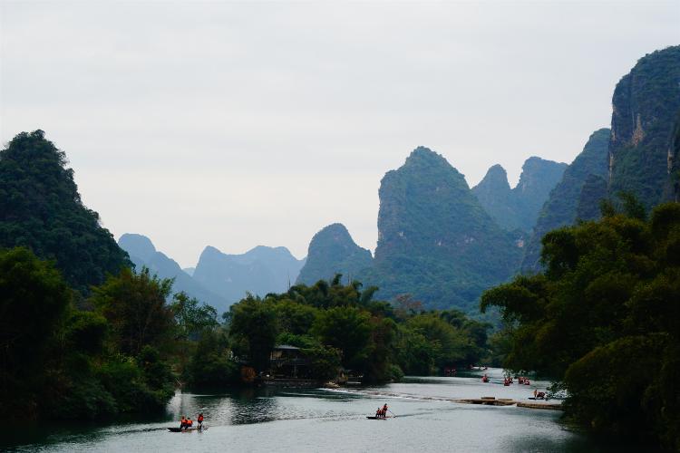 <精品小团臻品桂林4天>广州往返广西大漓江、遇龙河竹筏、千古情、古东瀑布动车4天