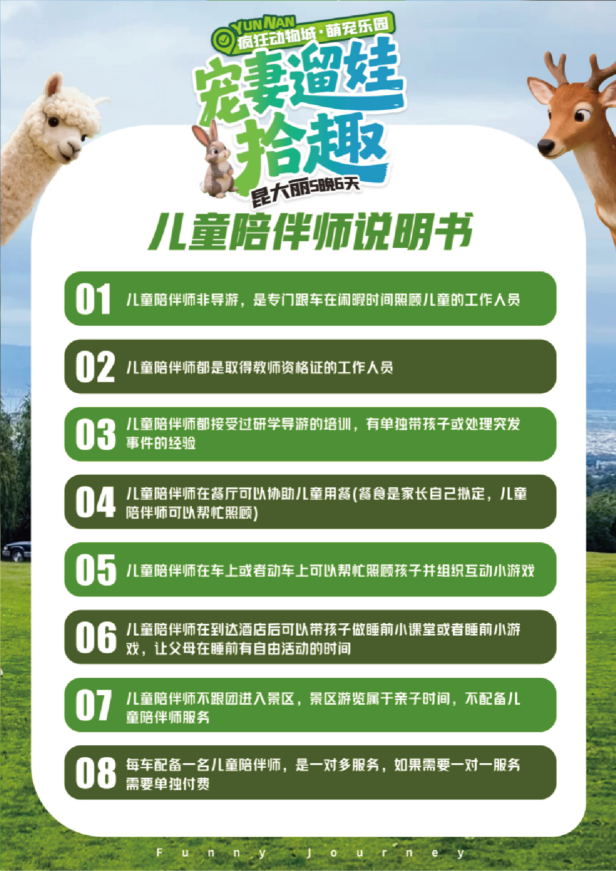 酒店享用早餐,9:00乘车前往大理,前往大理【萌宠乐园】(含每人一份大份投喂食物),闯入宫崎骏的童话世界,邂逅一群软萌可爱的小动物:羊驼、小猪、小羊、大鹅、小鹿、奶牛、兔子、孔雀......可以和羊驼贴贴,追梅花鹿撒欢、和20+软萌动物零距离互动,投喂心仪的小萌宠......小心羊驼的“口水攻击”哦~