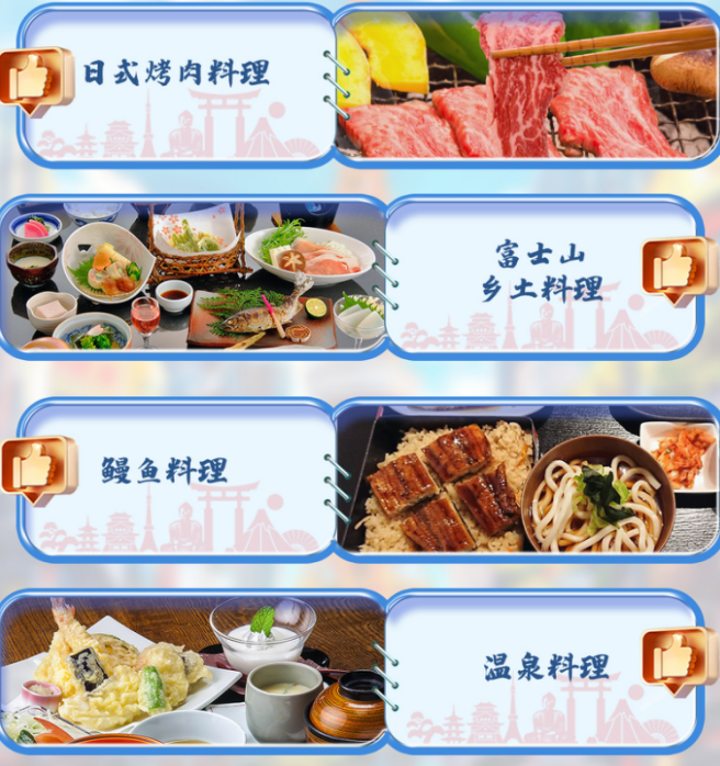 鳗鱼料理、富士山乡土料理温泉料理、日式料理日式烤肉料理