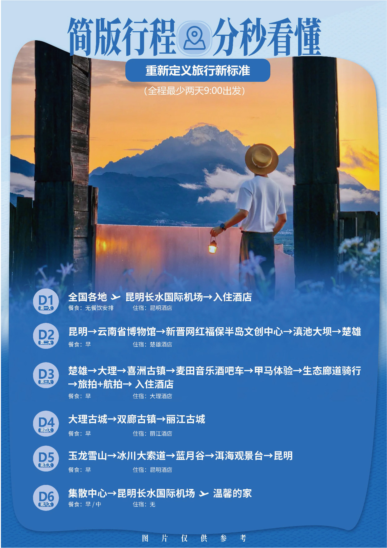 【领玩出圈】昆明+大理+丽江5晚6天游(2-8人精品小团,旅游管家全程领玩,全程4钻酒店+大理3钻海景客栈海景房)