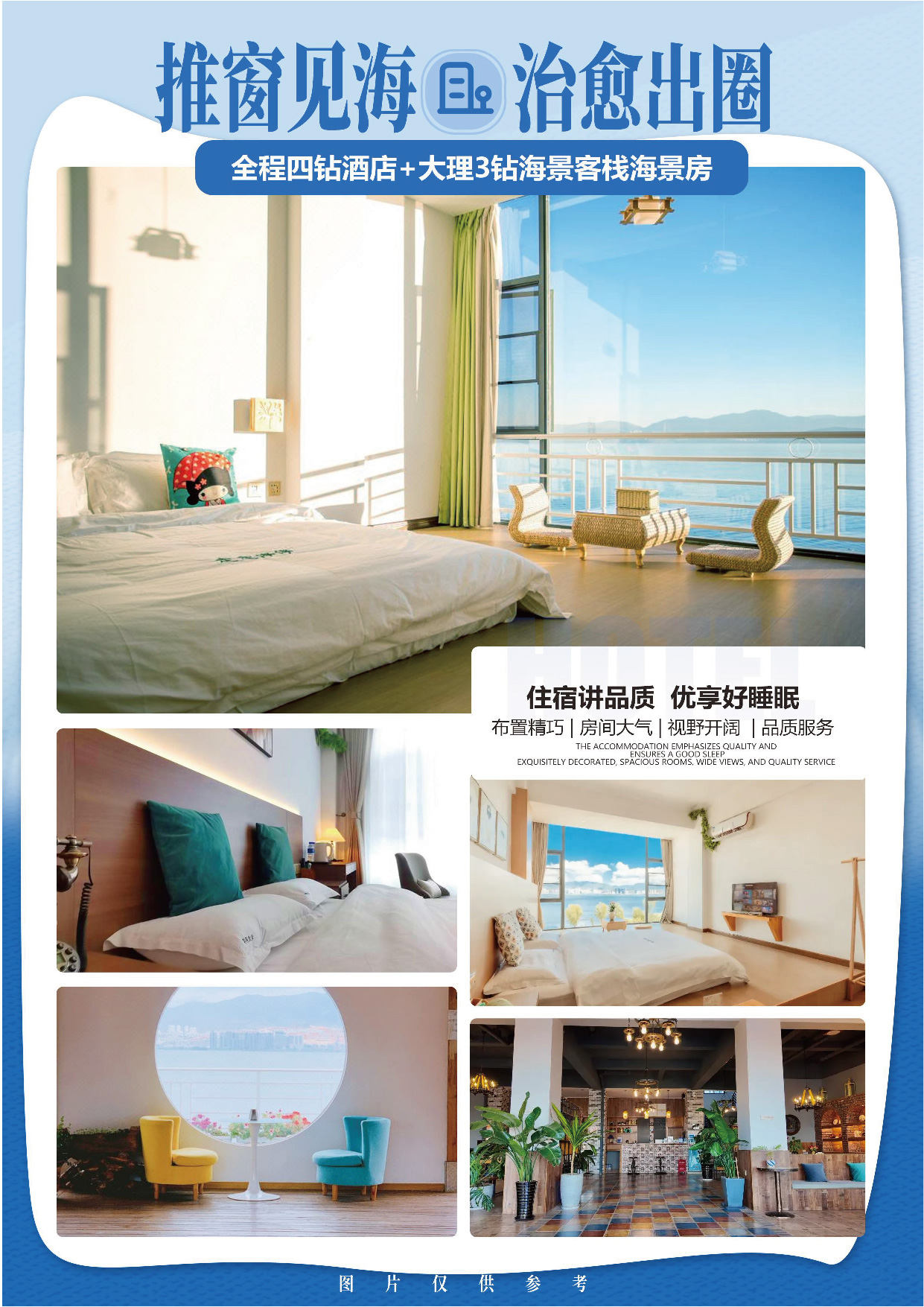 1、全程4钻酒店+大理3钻海景客栈海景房,品质住宿优享好睡眠