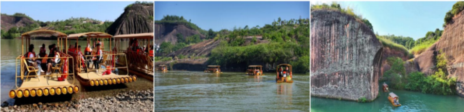 下午:酒店早餐后乘车前往【飞天山景区】(游览约3 小时 ,含大门票+环保车+竹筏) 。每当清晨日出东方朝阳将温柔的光线洒在山头,洒在水面时美好的一天由此开始;大旅行家徐霞客曾赞叹飞天山“无寸土不丽,无一山不奇”,并镌刻“寸土佳丽”。飞天山的翠江风情能与漓江风景媲美 ,享有“小桂林”美誉。后前往飞天山大面洲码头乘坐竹筏 ,【九龙水寨竹筏】探秘之旅全程 4.8 公里,游览时长约 30 分钟。游客乘坐竹筏从九龙水寨寨门进入 ,山沿水走,水随山转,水道由宽至窄 ,曲折蜿蜒,每过一道弯就展现出让人惊喜的美景。最后从鲤鱼嘴出来,经过千年悬棺 ,完成游览环路 , 回到大面洲码头。 时而小桥流水 ,时而峡谷林立 ,穿梭在丹霞地貌之间 ,这种感觉真的太奇妙了!